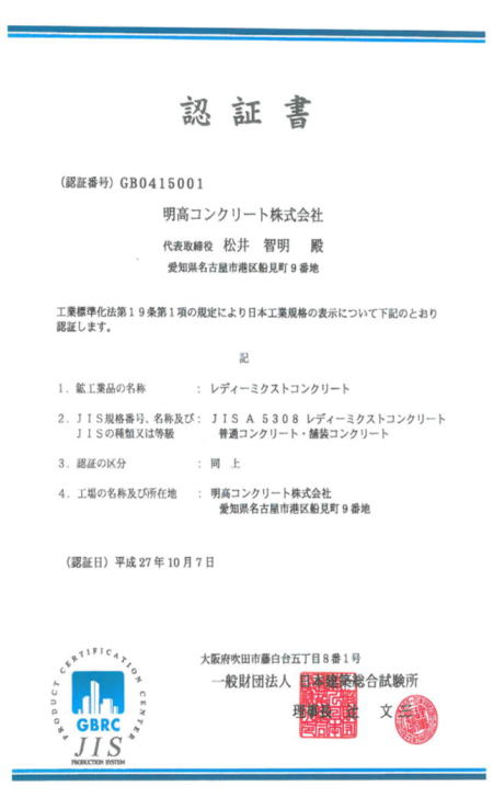 トップページ > JIS認証書